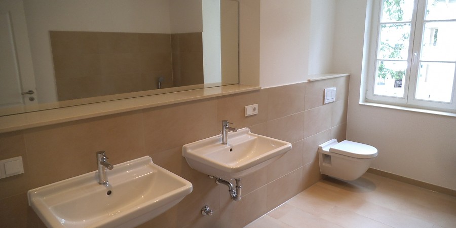 Das Gebäude hat eine gehobene Ausstattung erhalten, z.B. wurde auf die Bädergestaltung ein besonderer Augenmerk gelegt.