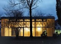 Die Beleuchtung des Gemeindehauses hebt die Architektur hervor und soll einen sehr warmen Eindruck vermitteln.