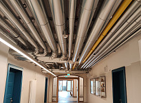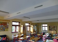 Neben der Sanierung der Heizung und der Sanitärinstallation wurde vor allem eine Lüftungsanlage mit Wärmerückgewinnung zur Lüftung der Klassenzimmers eingebaut.