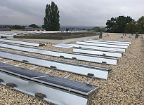 Auf dem Dach wurde ebenso eine 35 kWp PV-Anlage installiert, die Strom in das Schulnetz für den Eigenverbrauch erzeugt und damit die Betriebskosten deutlich reduziert.