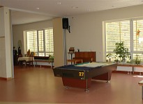 Integriert sind ein Cafe mit Billard- und Tischtennisraum sowie ein Mehrzweckraum.