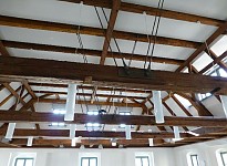 Die Räume des Cafes und der Veranstaltungssaal sind über ein Lüftungsgerät mit einem Kreuzstromwärmetauscher zur Wärmerückgewinnung be- und entlüftet.